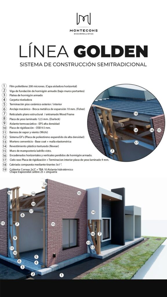 La construcción está en constante evolución, y en MonteCons Desarrollistas lo sabemos mejor que nadie. Por eso, presentamos Línea Golden, nuestro nuevo sistema de construcción semi tradicional, diseñado para quienes buscan un equilibrio perfecto entre solidez, eficiencia y rapidez.