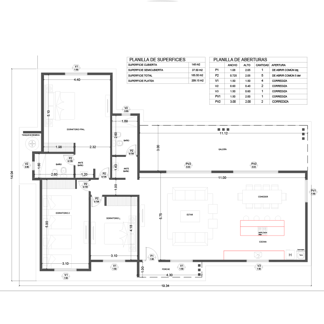 185,5 m² desarrollados con criterio funcional y constructivo.